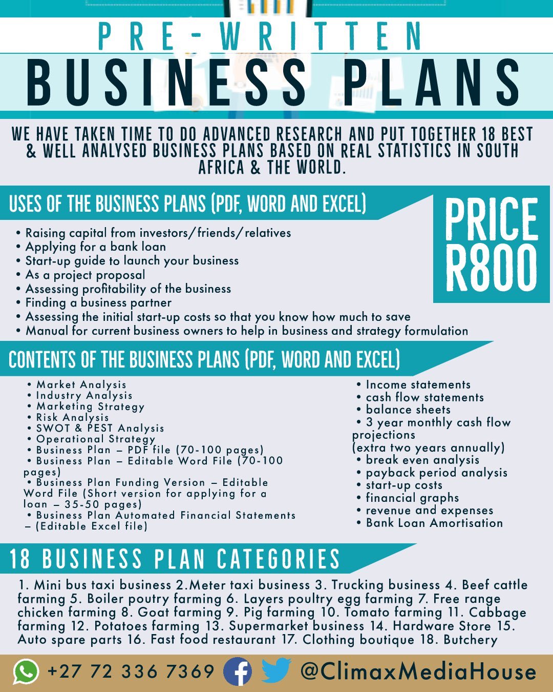 Twitter 上的 Climax Media House Our Business Plans Still Selling Like Hot Cakes Don T Delay Your Business Let Us Help You With One Of Our Pre Written B Plans For Your Industry Boity Capeindependence
